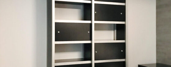 The black lacquered sliding doors can reveal different scenes depending on the mood of it’s user. Designed and built for a teenager, these cubbies can hold his favorite and most prized memorabilia&